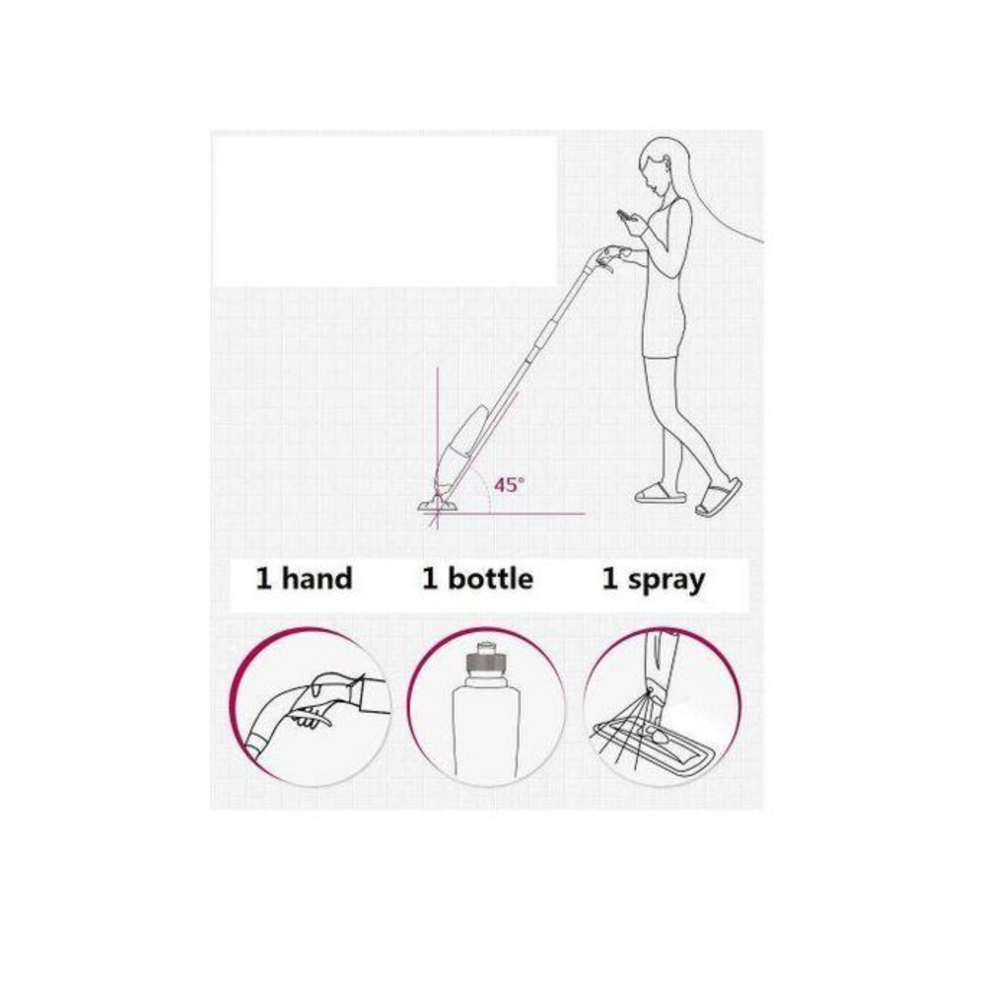 لا حاجة للدلاء أو الانحناء : نظام الرش المدمج يعني أنك لن تحمل دلو الماء الثقيل مرة أخرى! فقط املأ الزجاجة بسعة 450 مل، اضغط على الزناد، وابدأ بالرش والتنظيف بوضعية مريحة تحمي ظهرك.