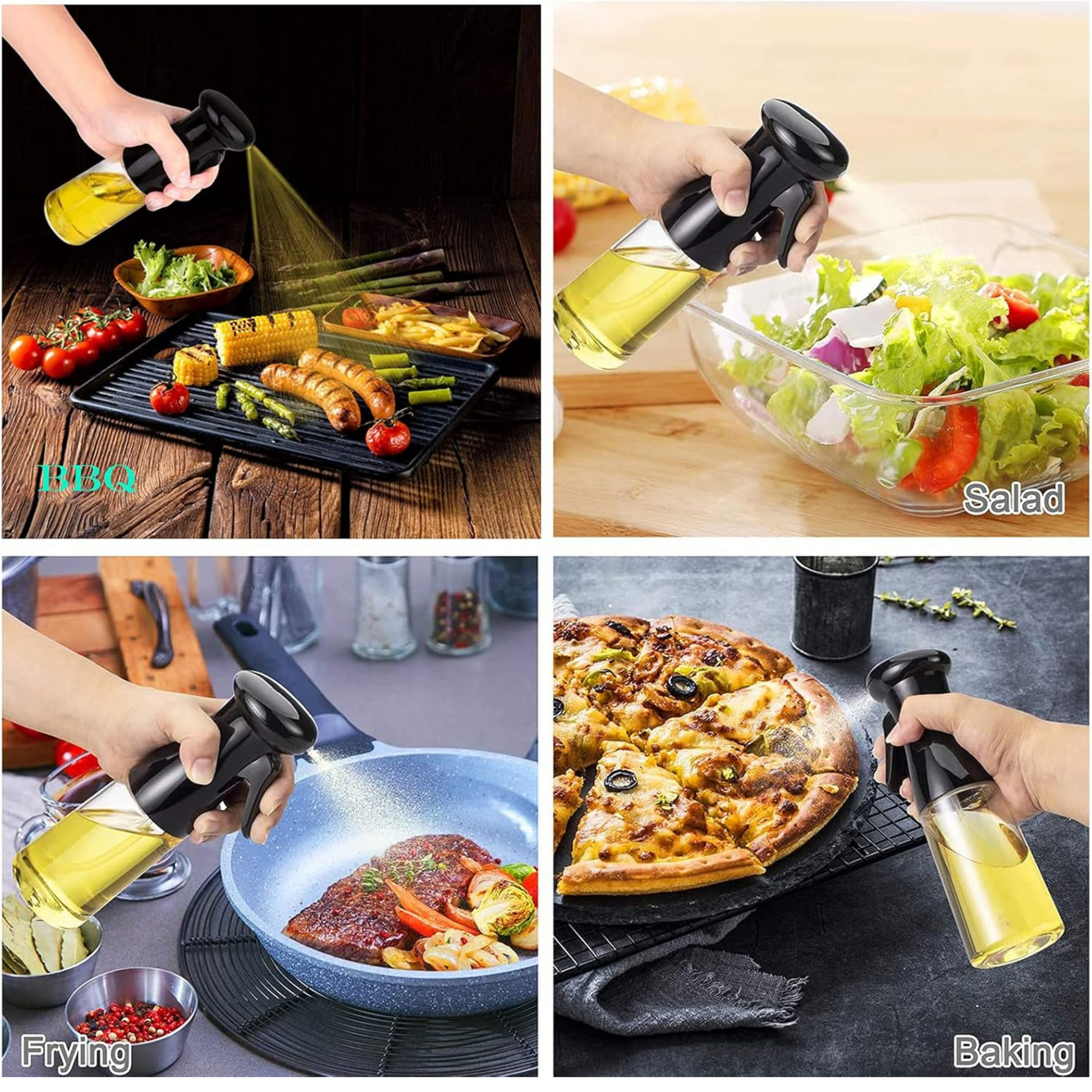 عبوة من زجاجتين بخاخ زيت للزيت والخل سعة 210 مل شفاف وقابل لإعادة التعبئة للطهي والشواء والمعكرونة والسلطة
