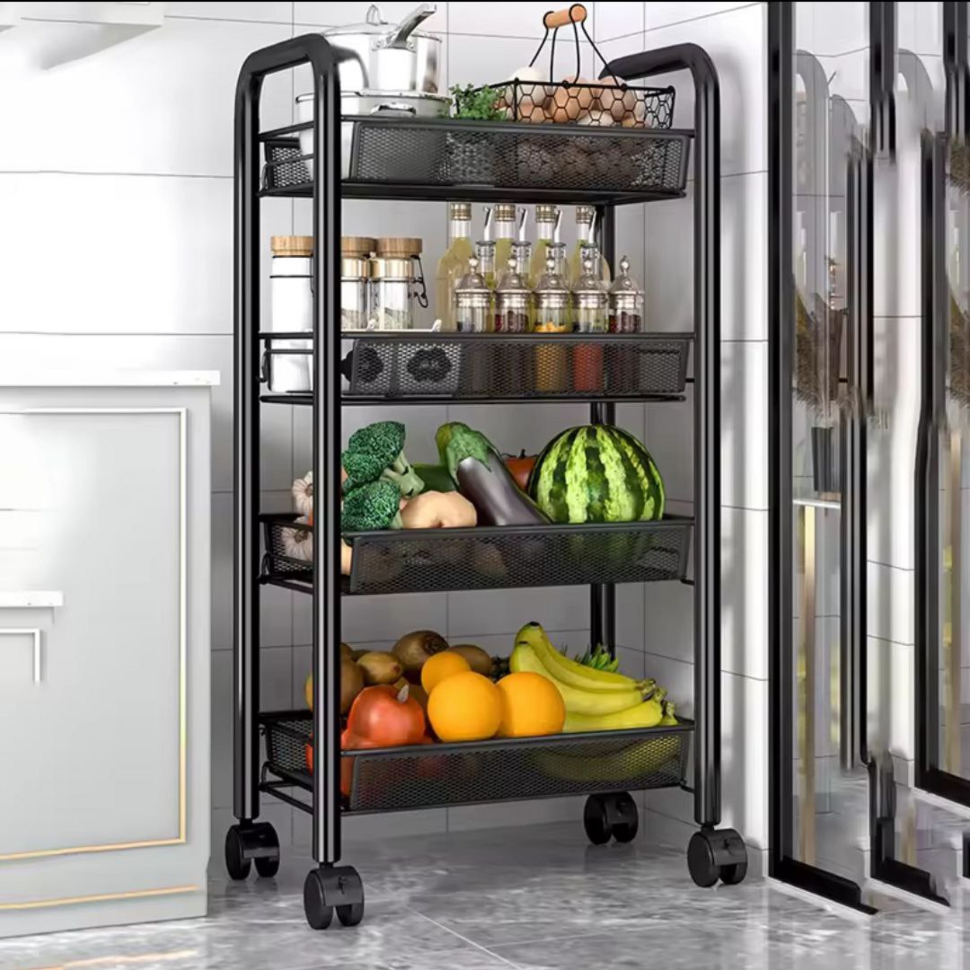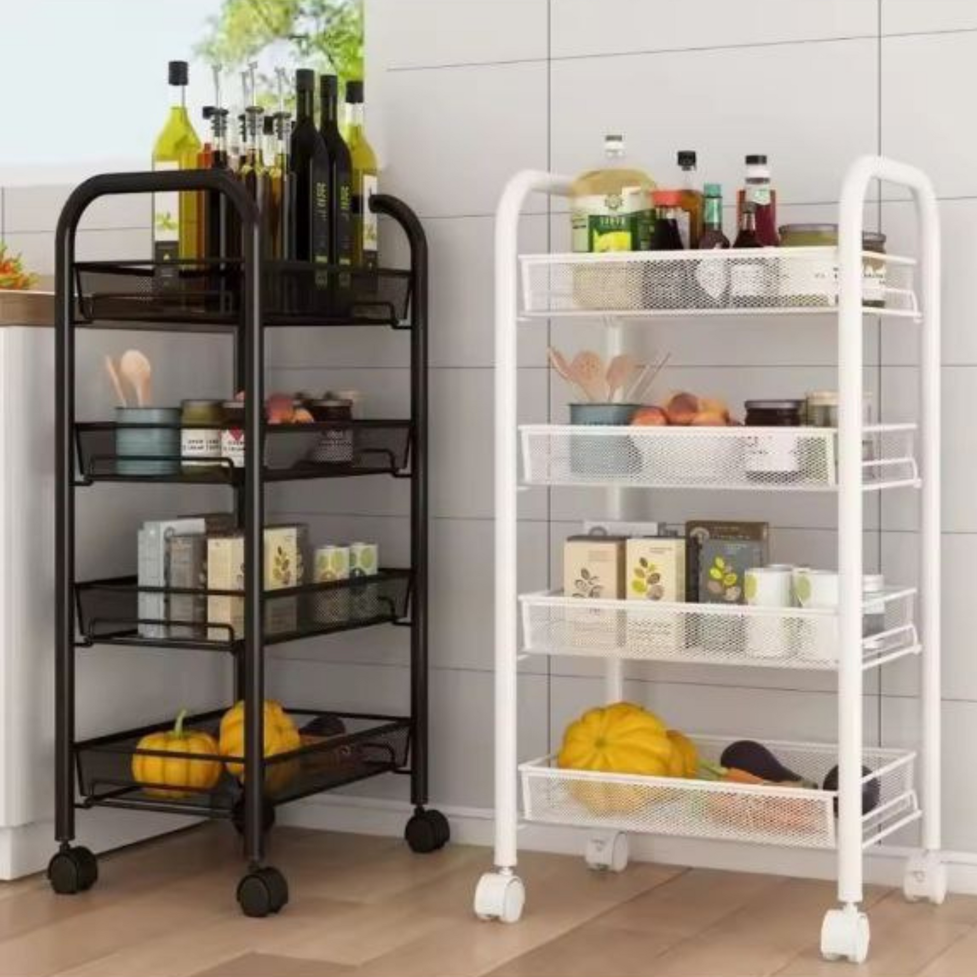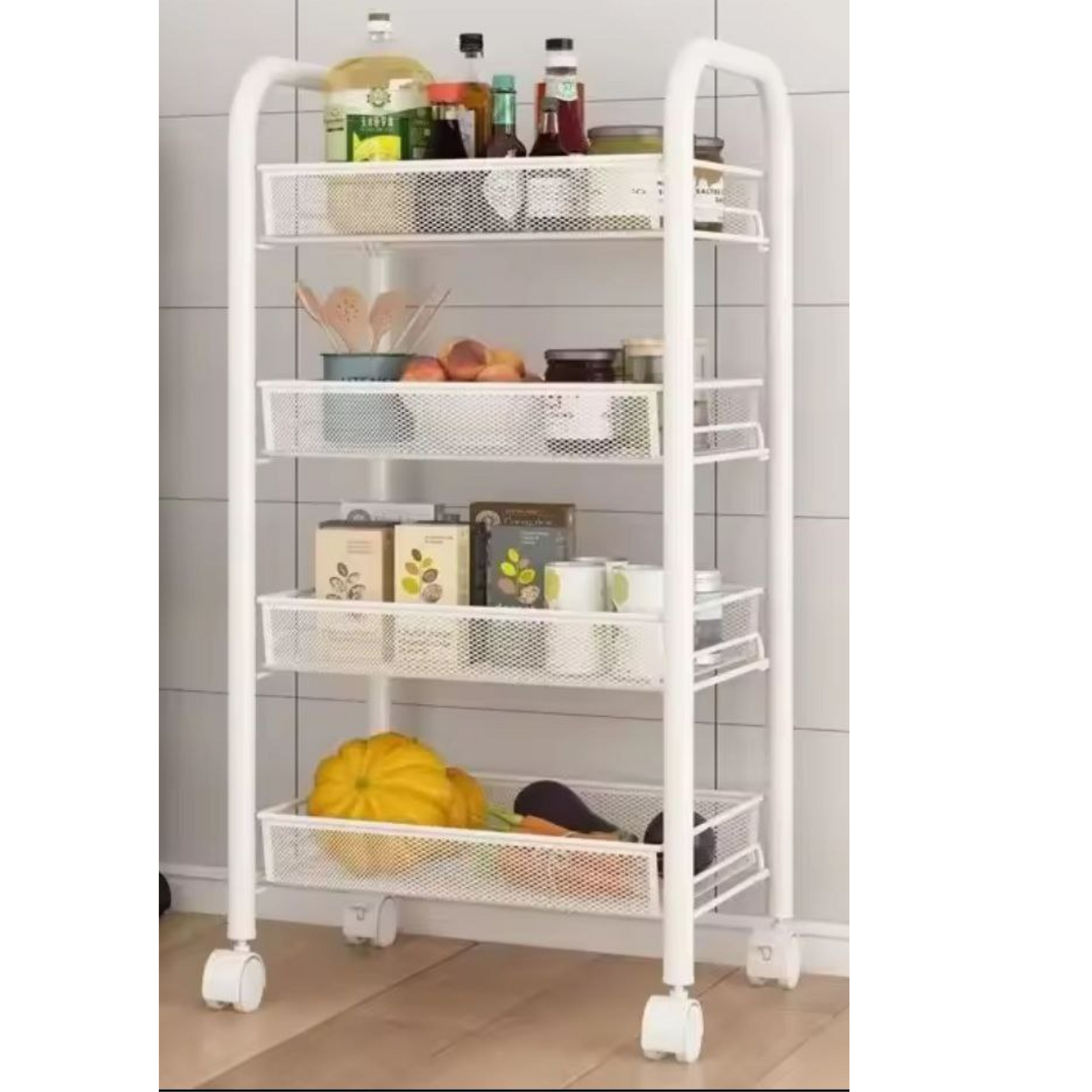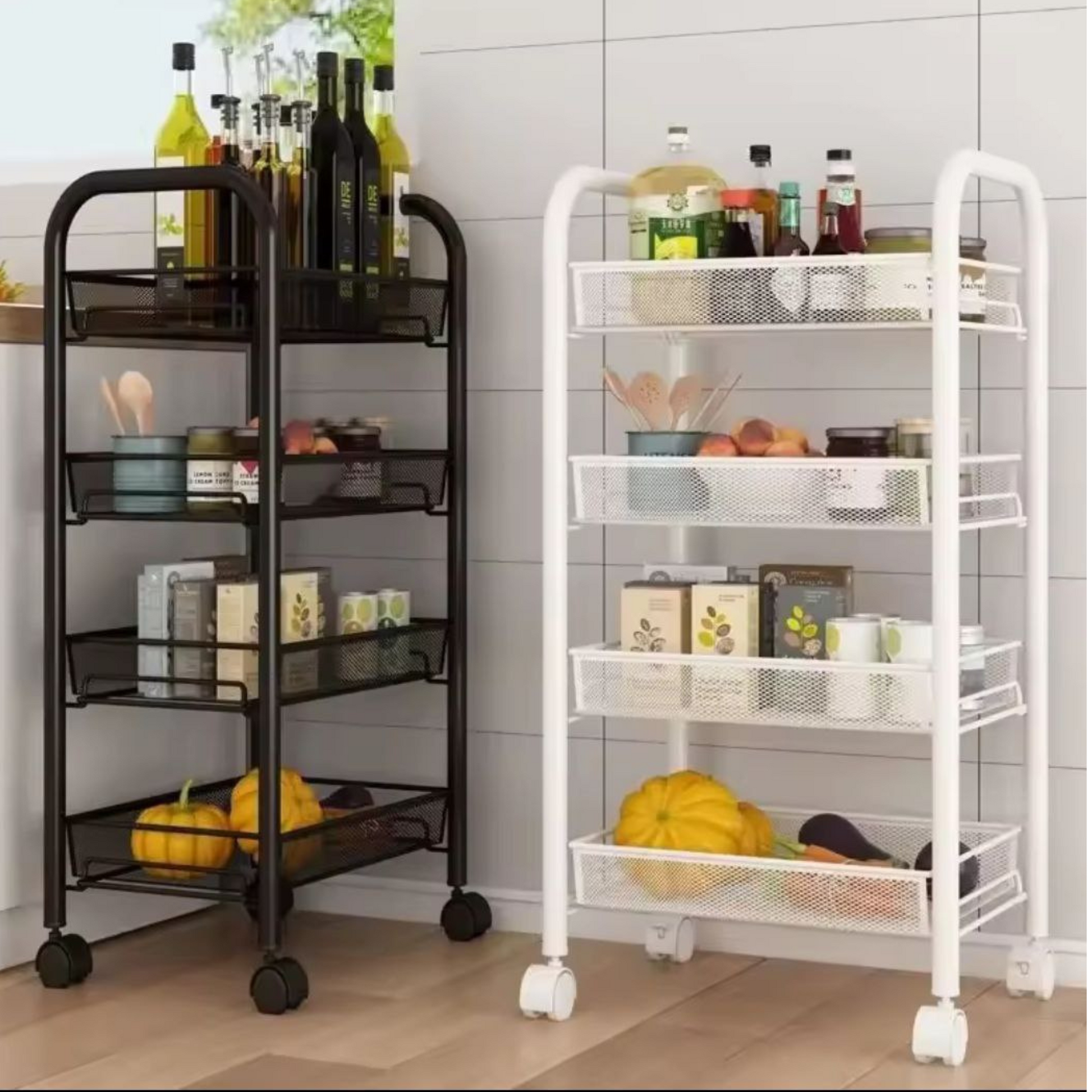 عربة مطبخ بأربع طبقات للحمام والمطبخ وغرفة الغسيل. مصنوعة من معدن مقاوم للصدأ، وسلة شبكية قابلة للتهوية. سهلة التركيب