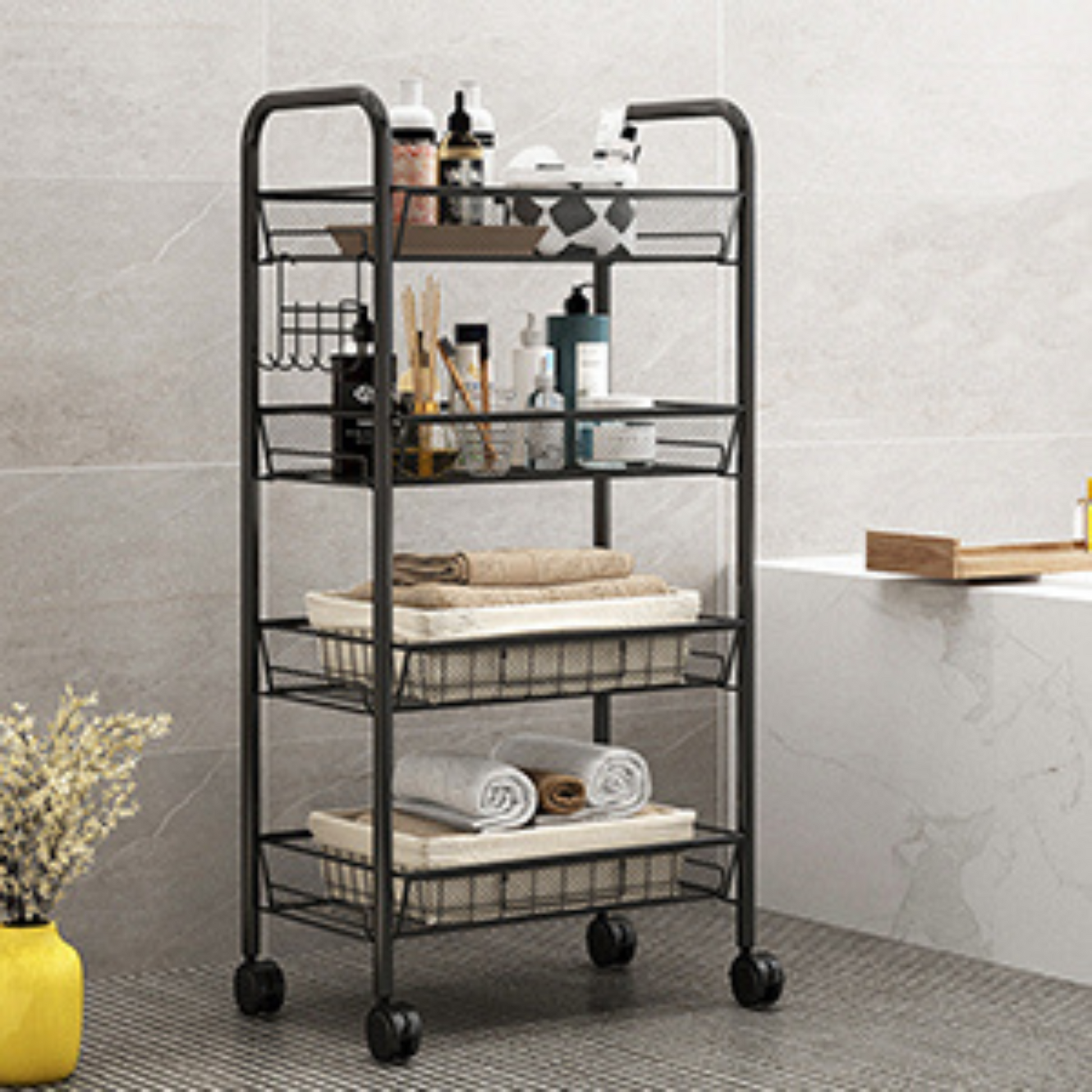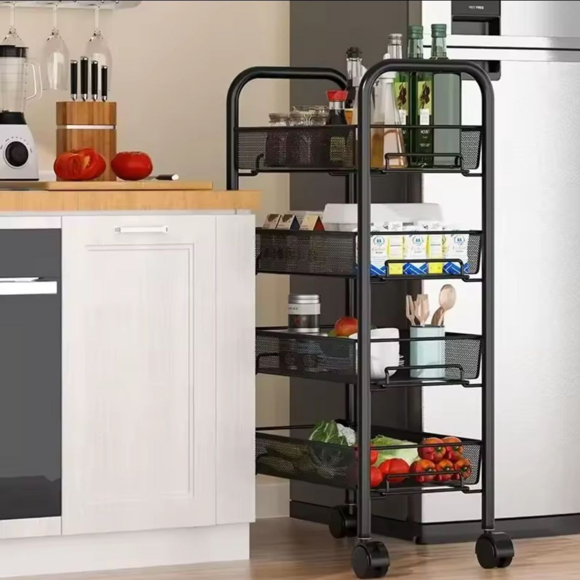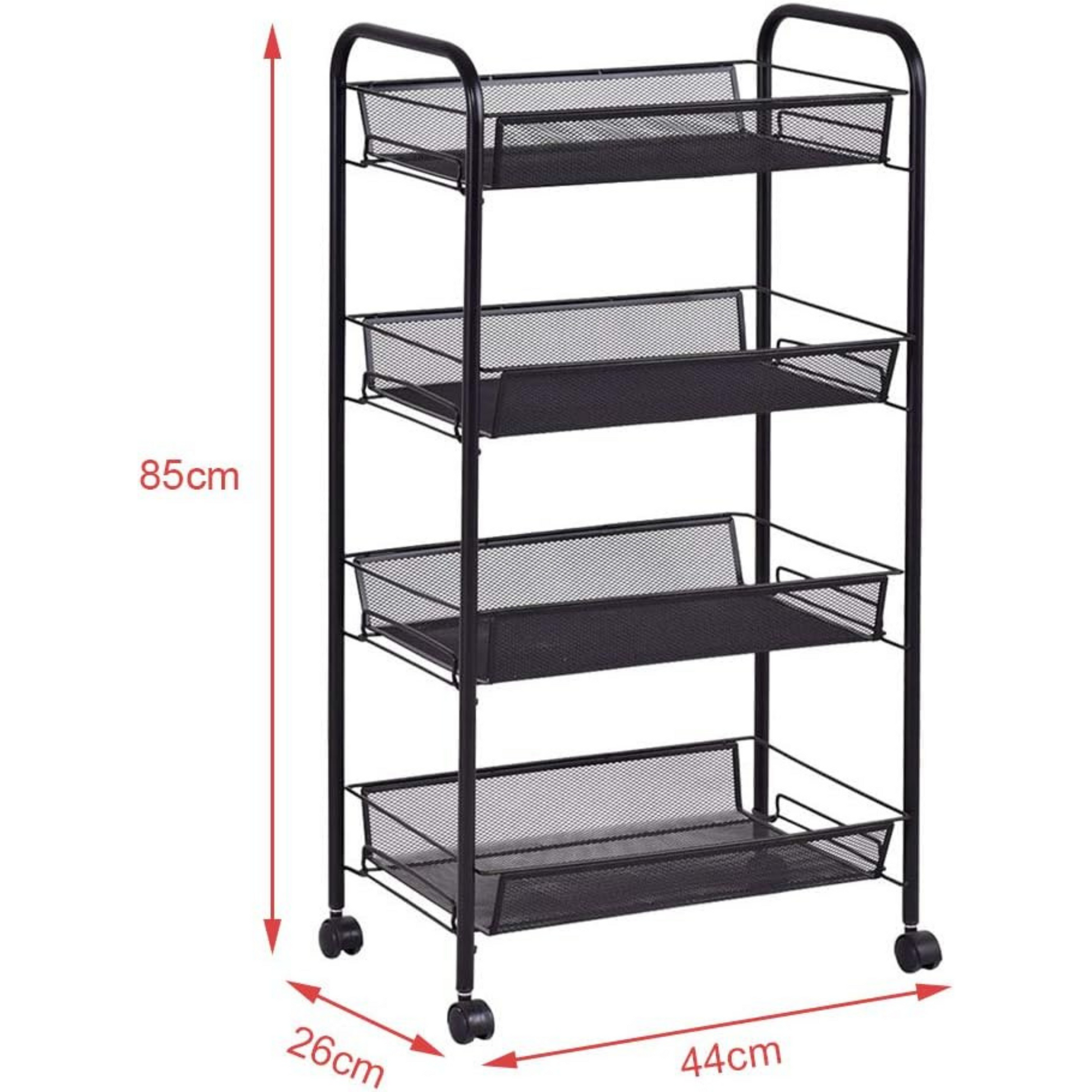 عربة مطبخ بأربع طبقات للحمام والمطبخ وغرفة الغسيل. مصنوعة من معدن مقاوم للصدأ، وسلة شبكية قابلة للتهوية. سهلة التركيب