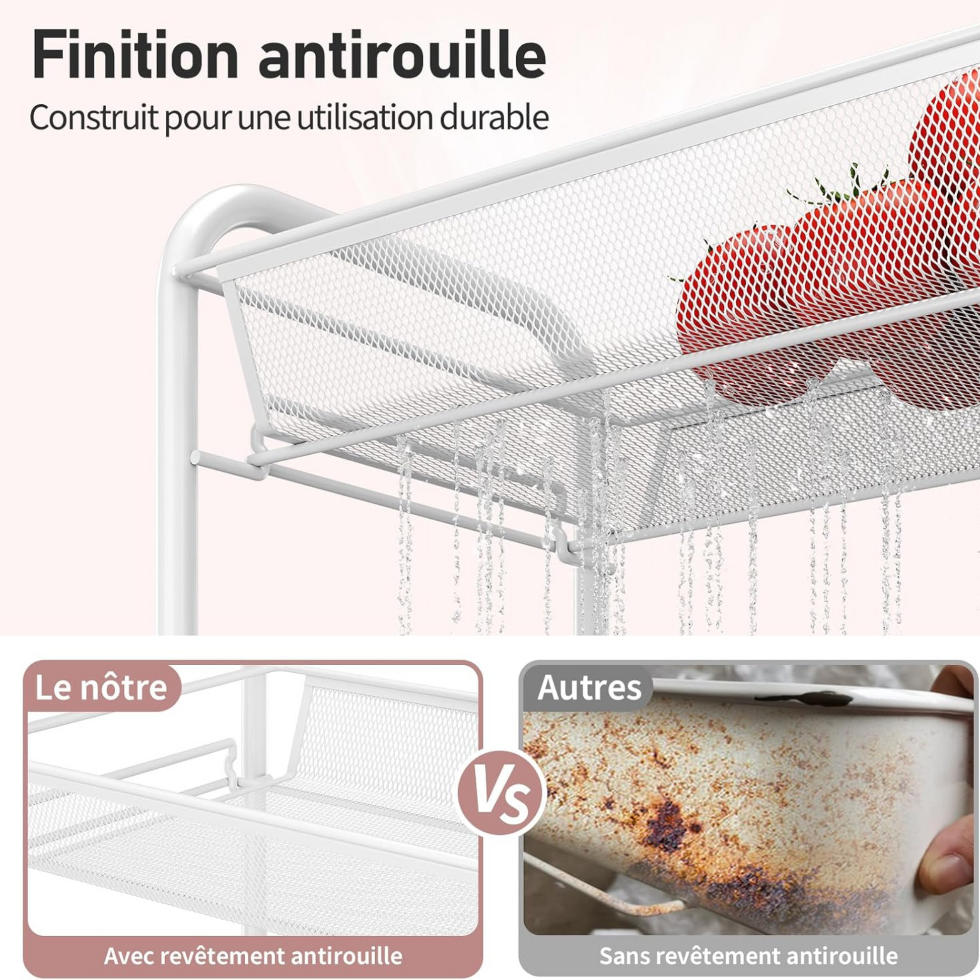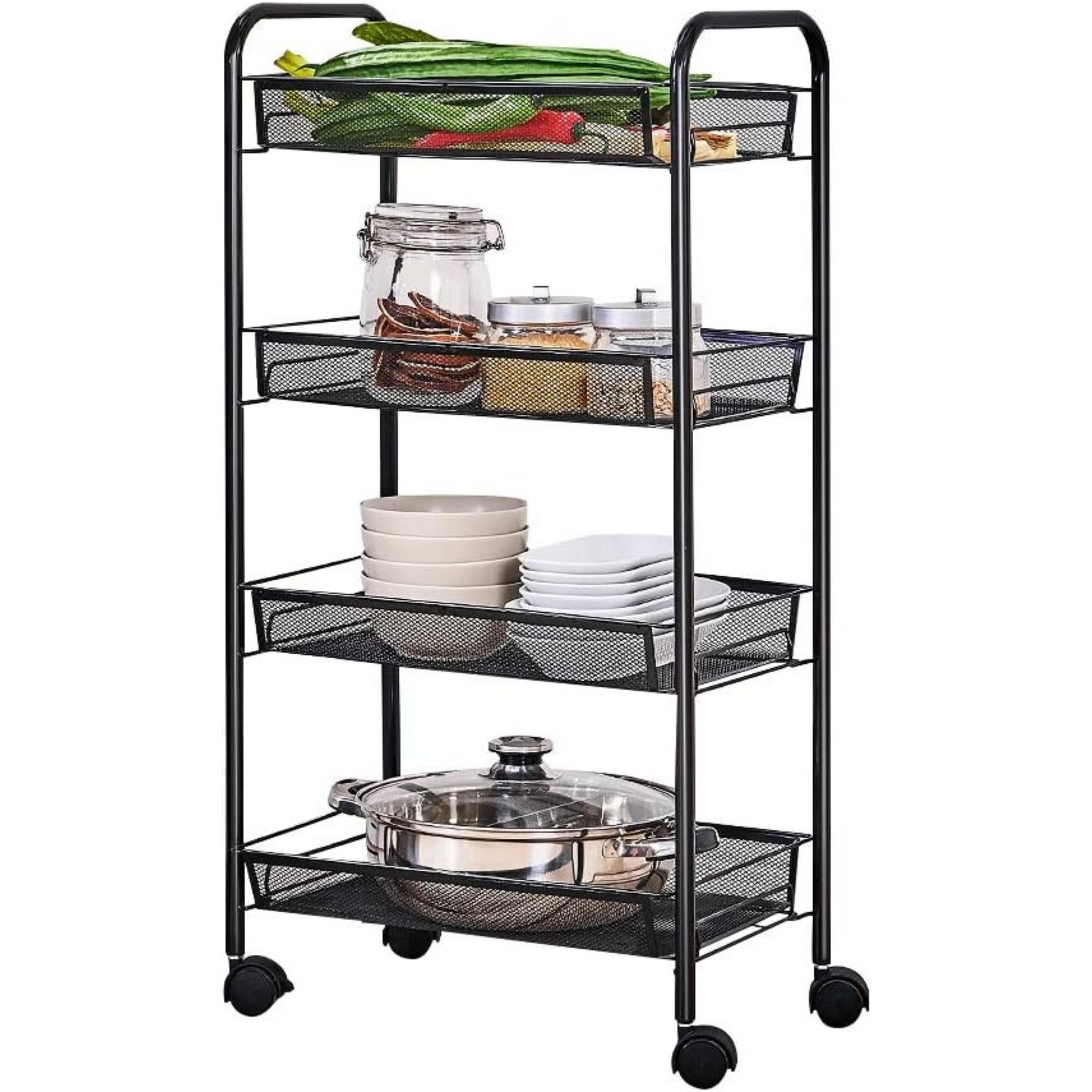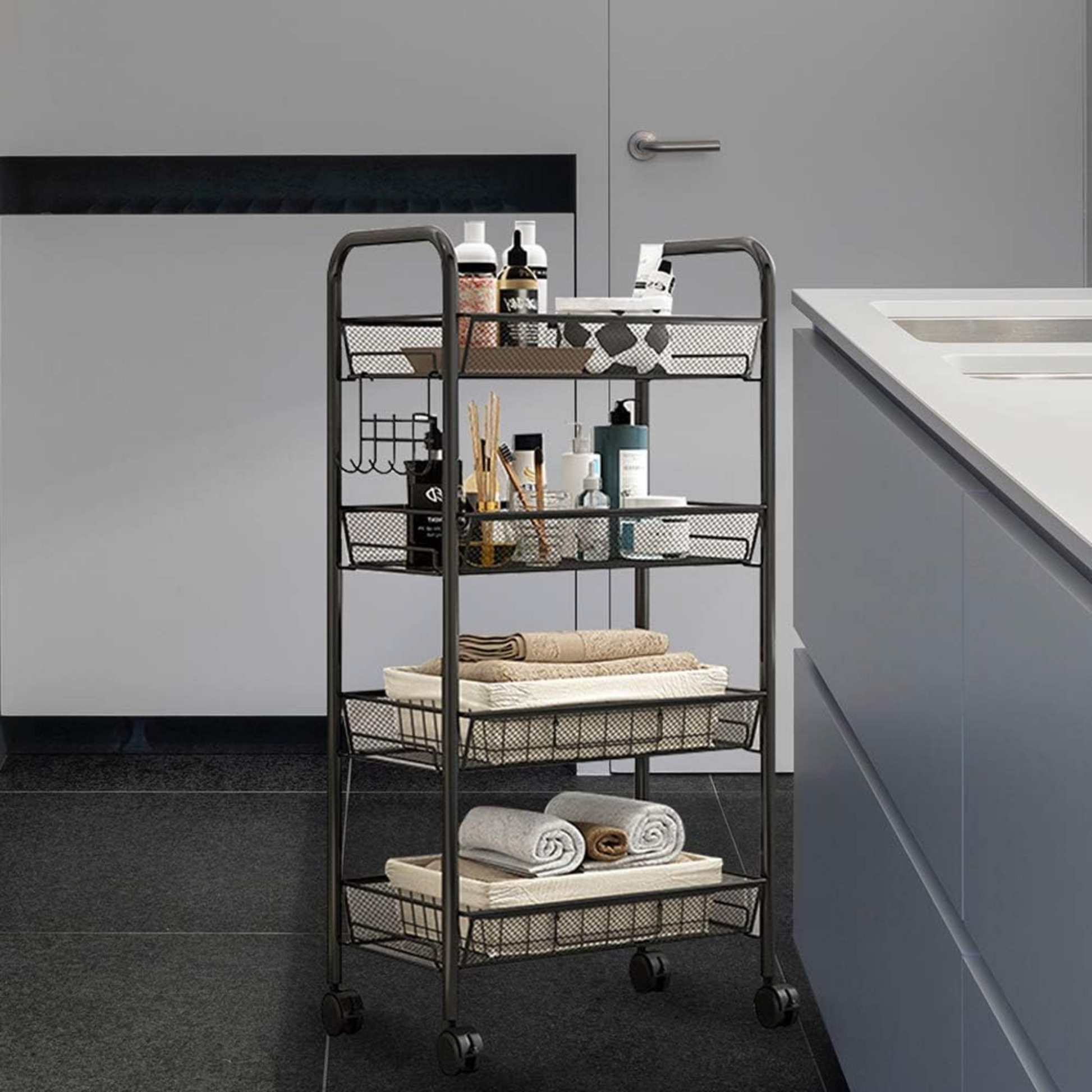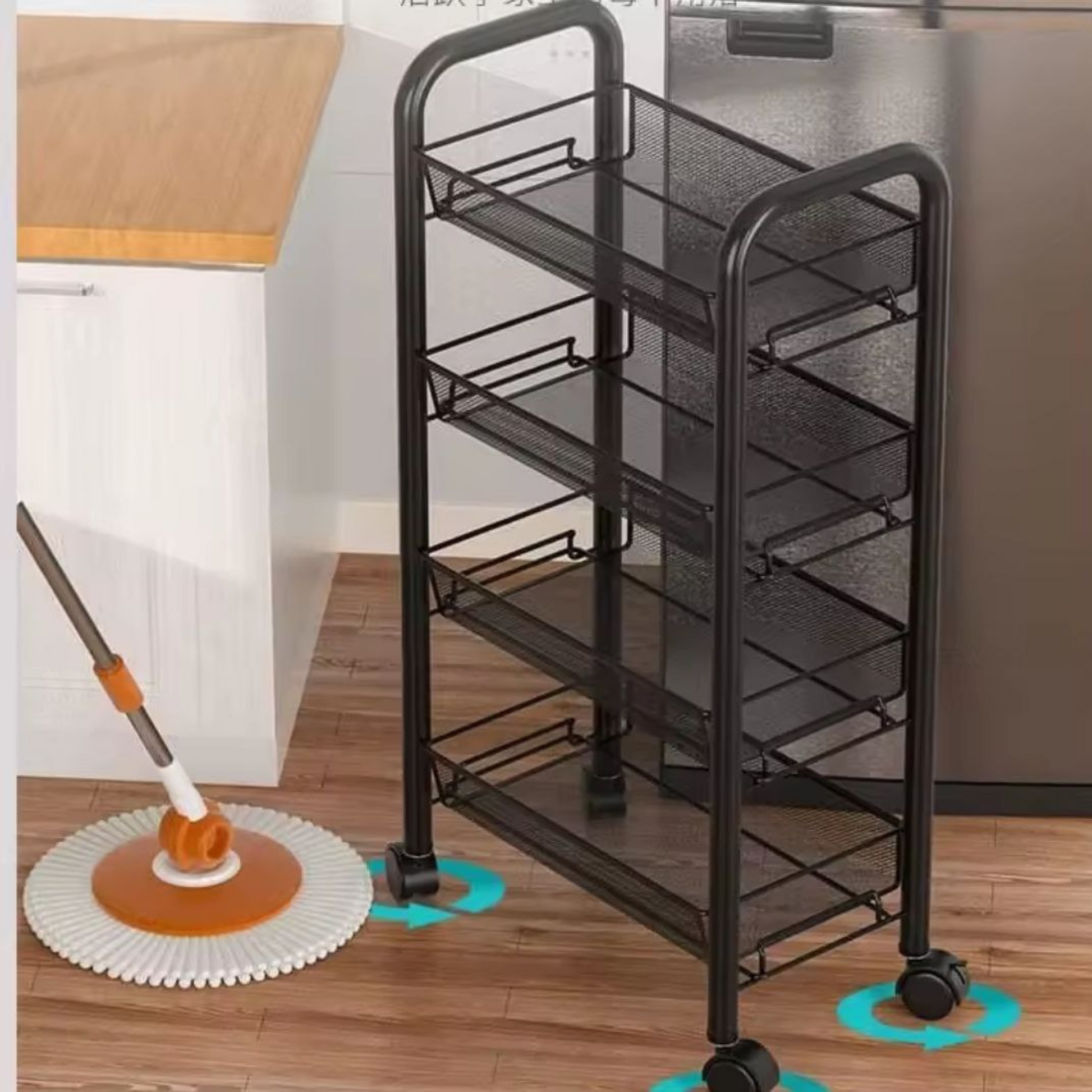 عربة مطبخ بأربع طبقات للحمام والمطبخ وغرفة الغسيل. مصنوعة من معدن مقاوم للصدأ، وسلة شبكية قابلة للتهوية. سهلة التركيب