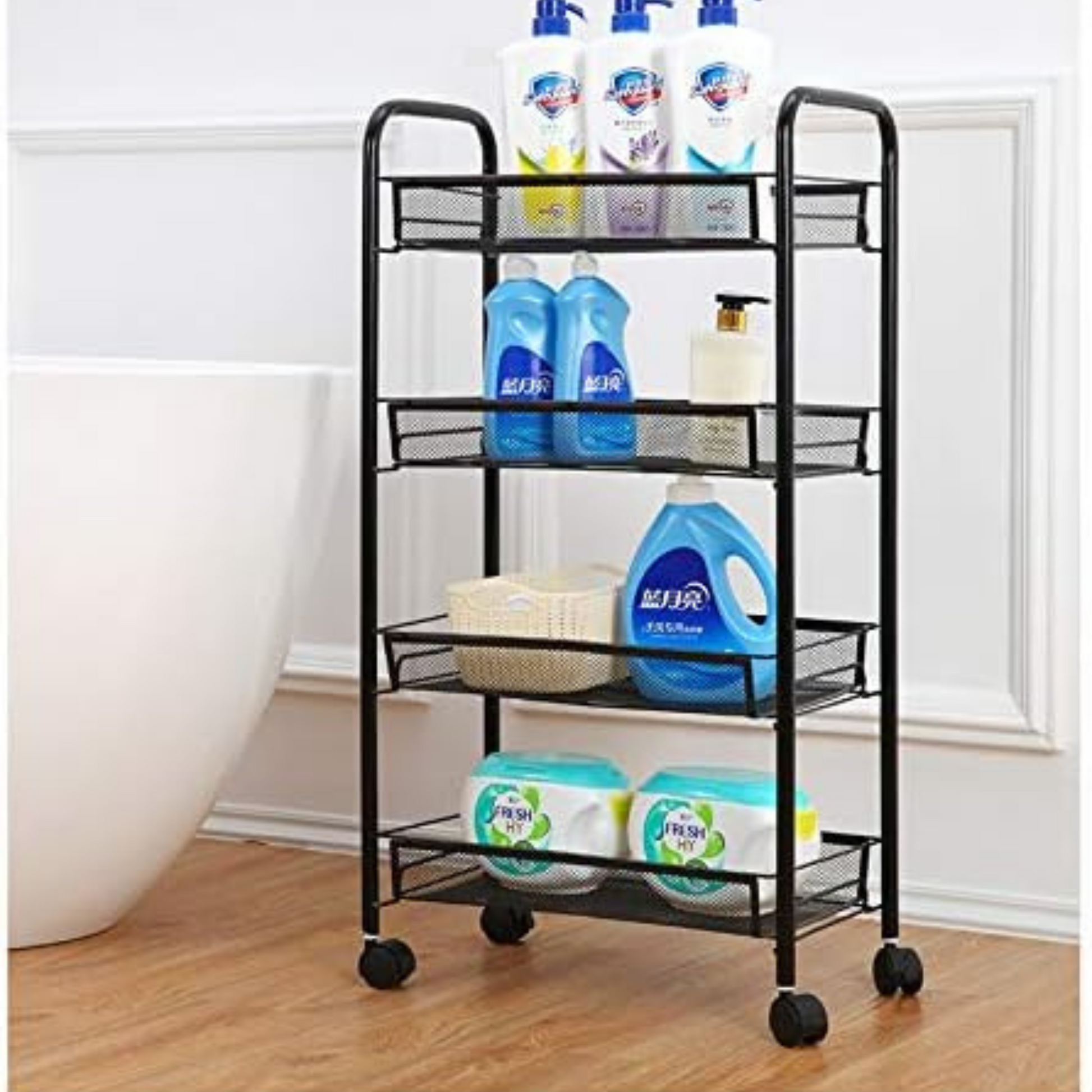 متعددة الوظائف: توفر هذه العربة ذات الأربع طبقات مساحة تخزين واسعة. استخدمها كعربة حمام، عربة أدوات، عربة كتب، عربة مطبخ، عربة خدمات، إلخ. فهي تُساعد على توفير المساحة، وتُحسّن استغلالها، وتُنظّم منزلك، وتُلبي جميع احتياجاته المنزلية