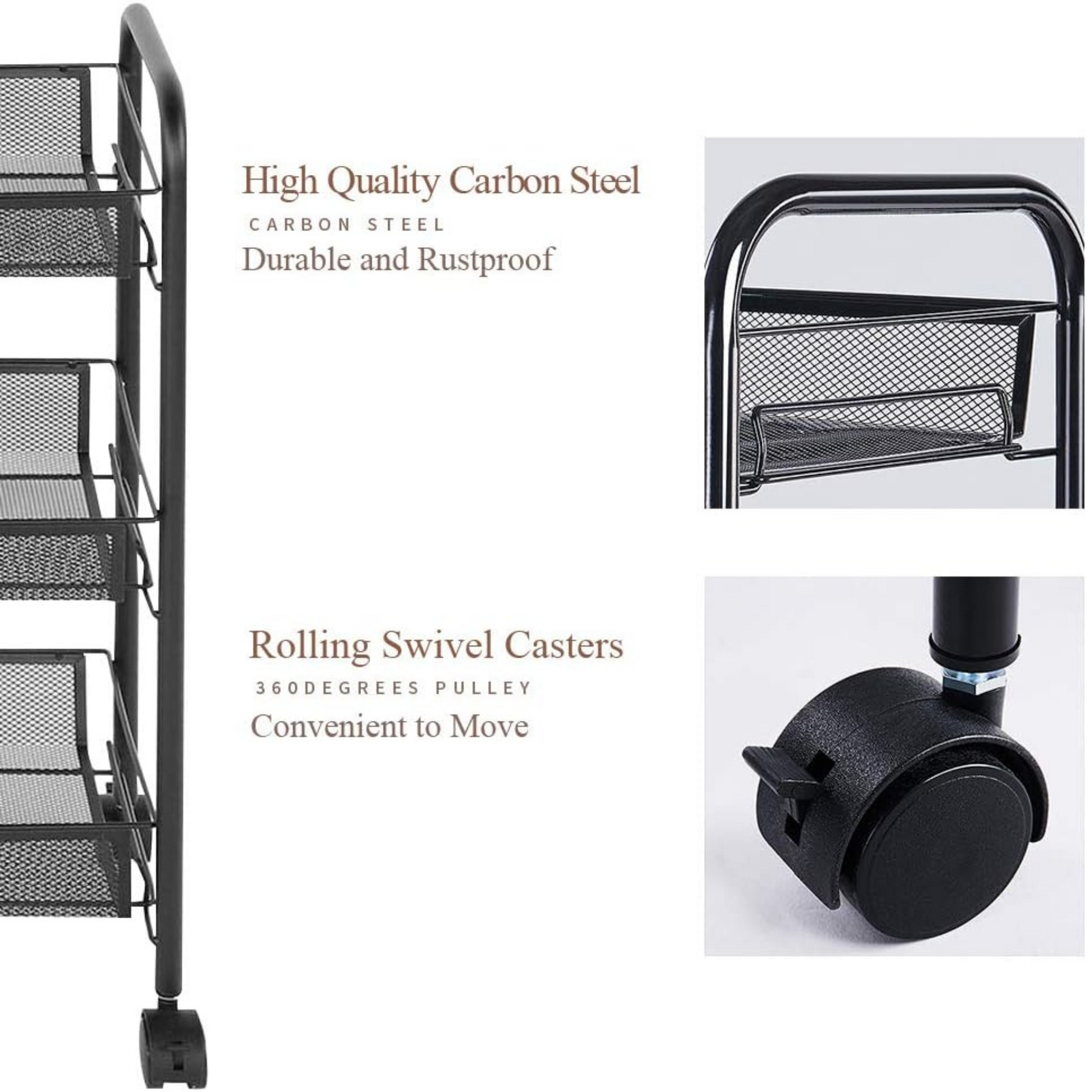 سهلة النقل: عربة التخزين المتنقلة مزودة بأربع عجلات مطاطية تدور 360 درجة، ويمكن تحريكها بمرونة. تتحرك بسلاسة وهدوء فائق. تصميم المقبض على شكل حرف U يُسهّل تحريكها، حتى عند حمل أغراض ثقيلة.