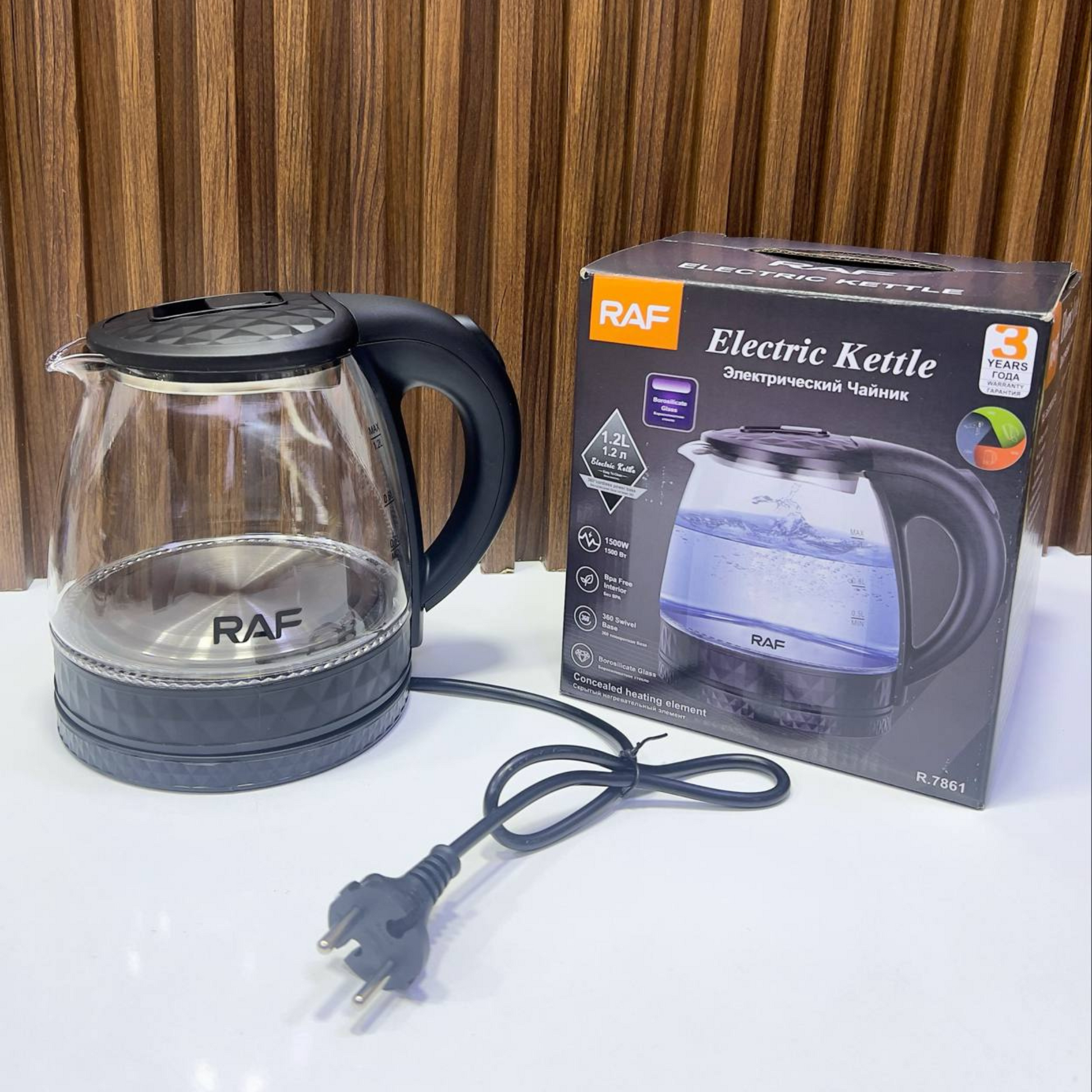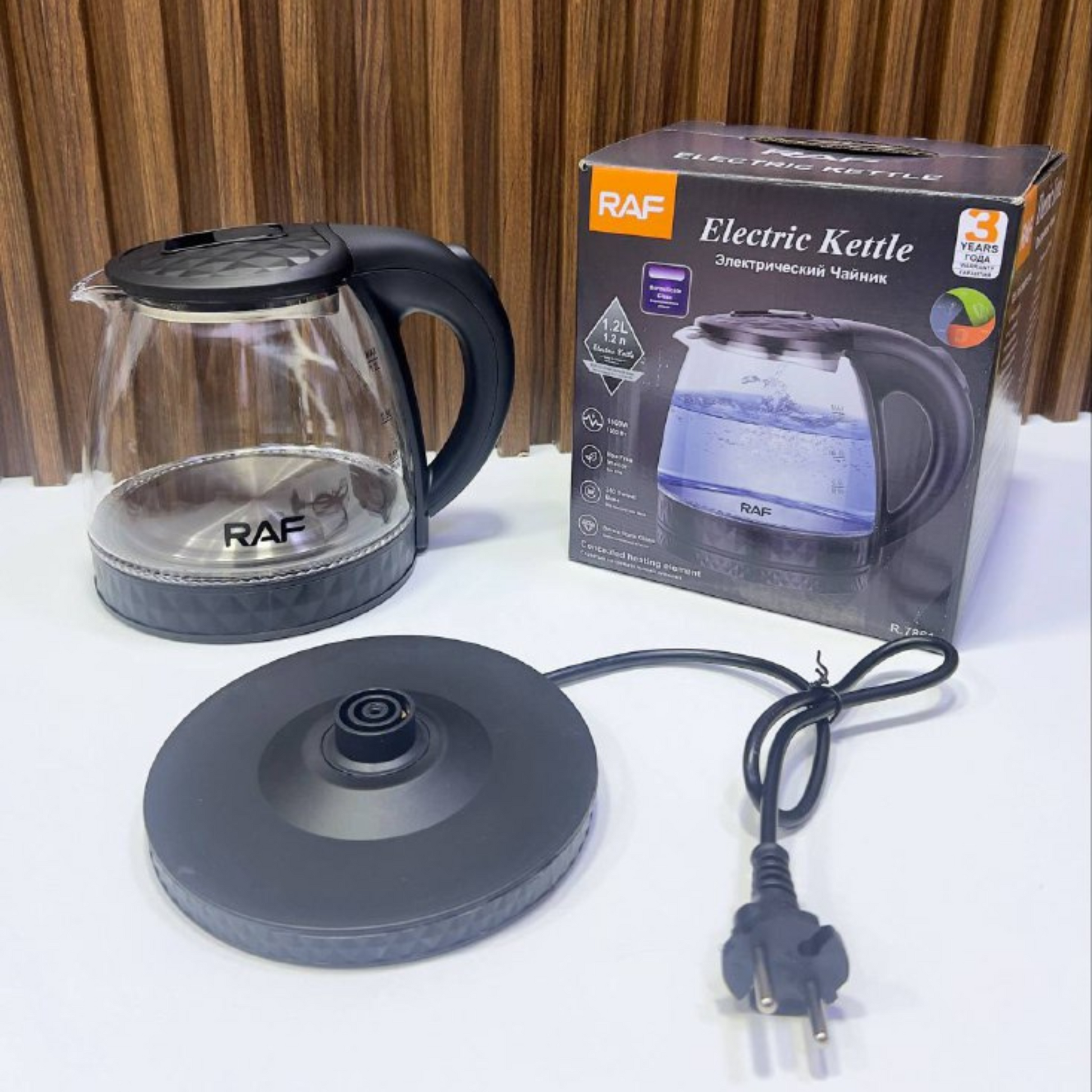 غلاية كهربائية زجاجية RAF سعة 1.2 لتر مع إضاءة LED