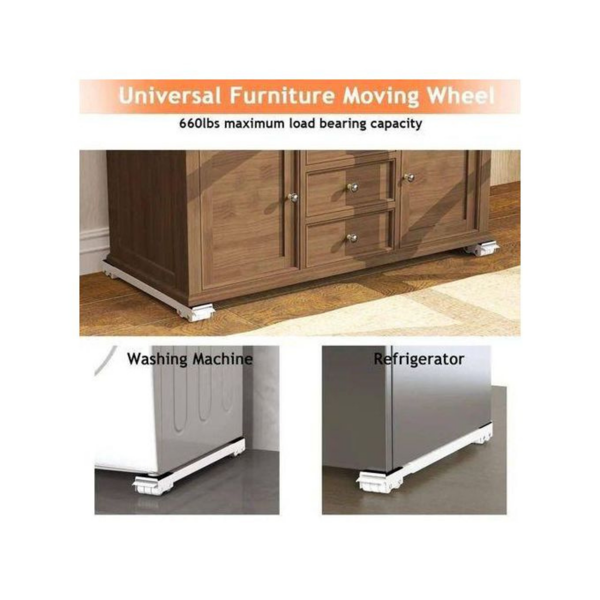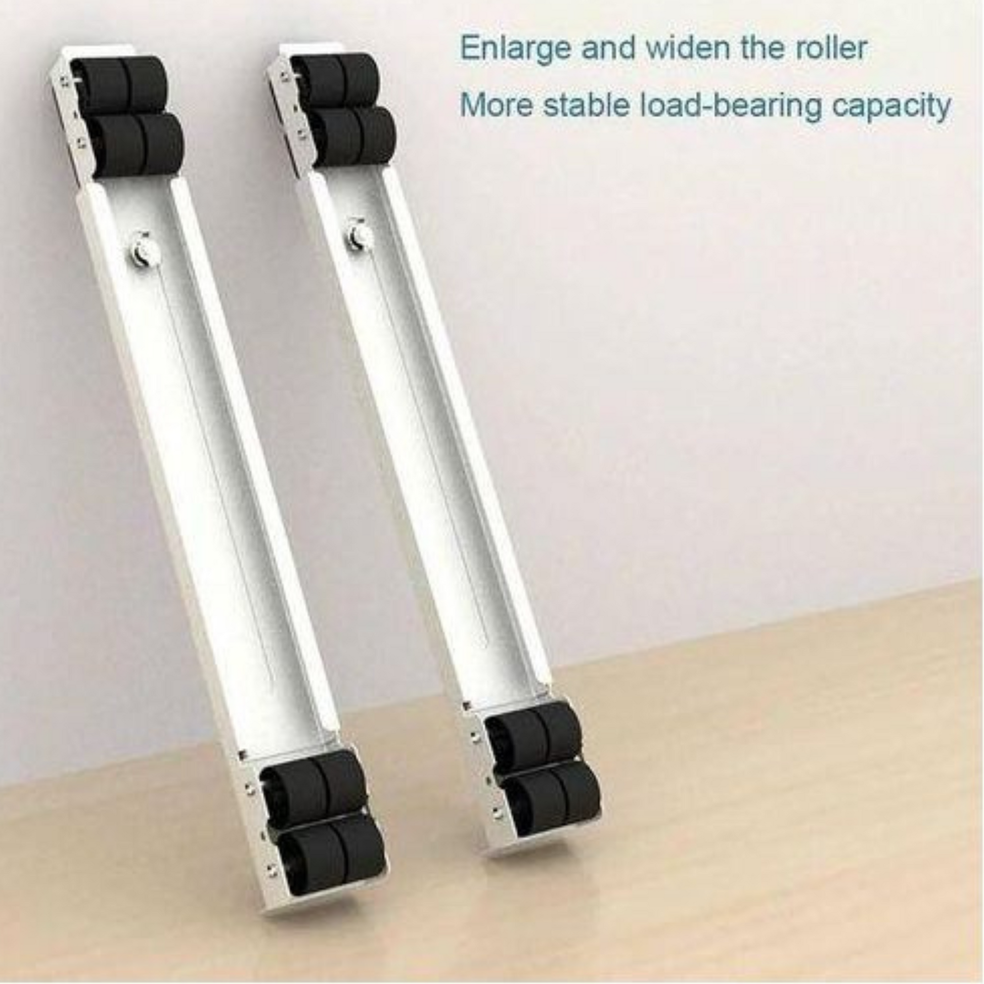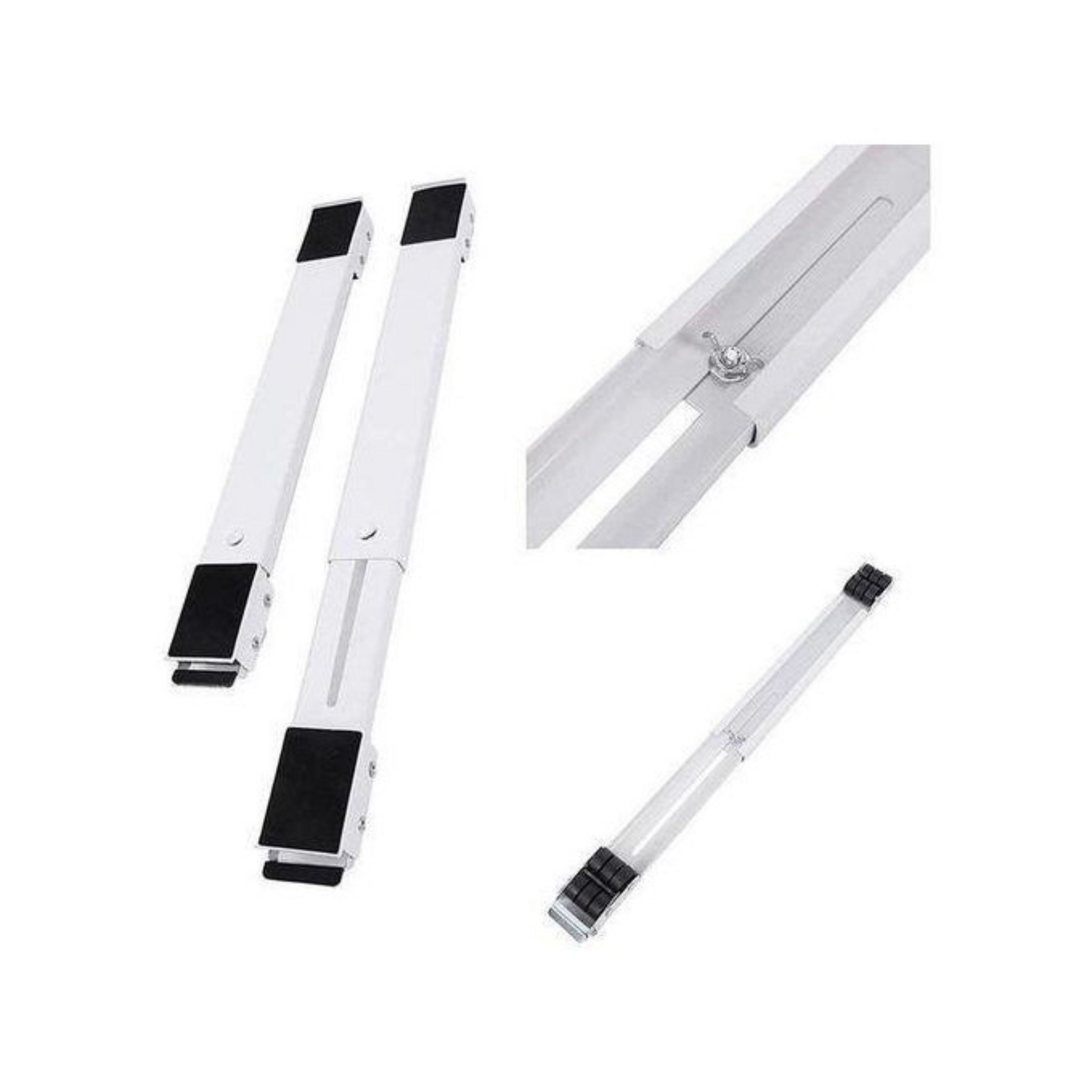 مجموعة من قاعدتين معدنيتين قابلتين للتعديل باللون الأبيض مع عجلات، مضادة للانزلاق ومقاومة للصدأ للثلاجات والغسالات والأجهزة المنزلية - بدون بطارية، أدوات محمولة أساسية في المنزل