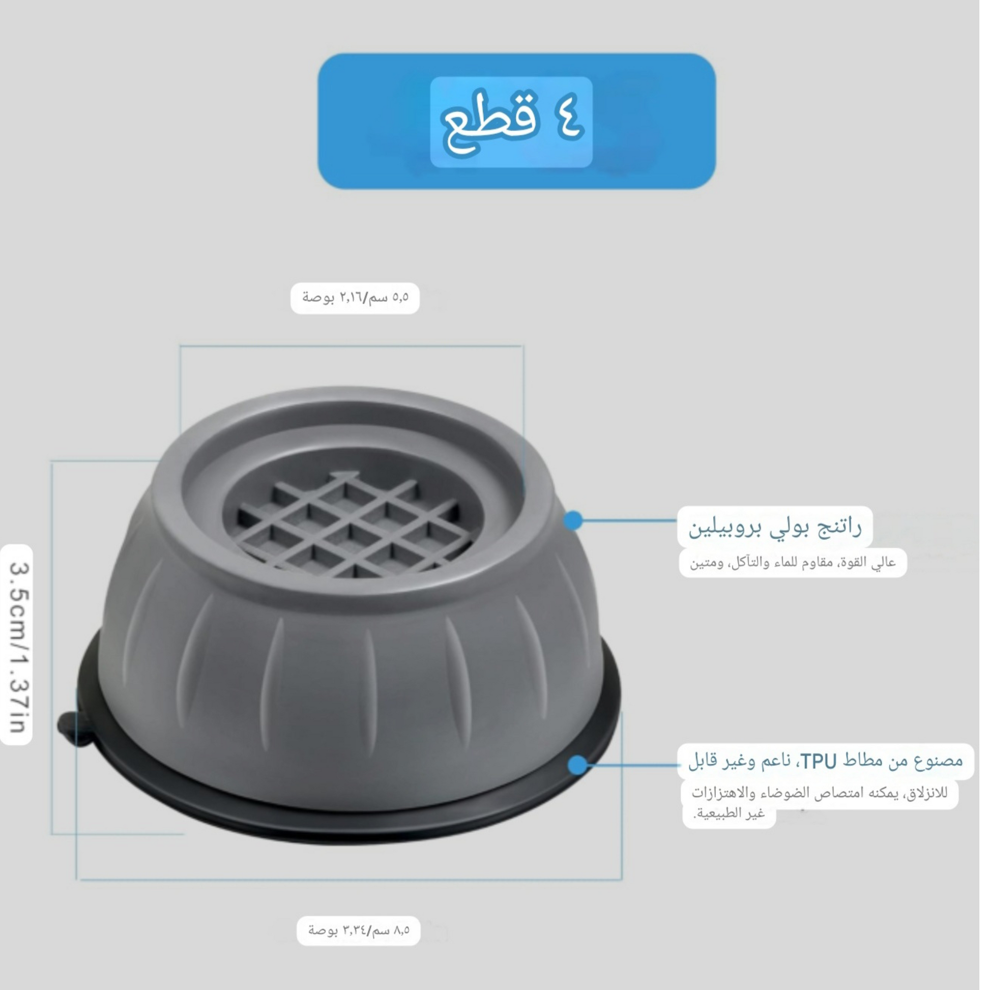 مجموعة من ٤ مخمدات اهتزاز للغسالة - تصميمها الموسع في الأسفل يزيد من ثبات الغسالة، ويقلل من ضوضاء الغسالة أثناء التجفيف.