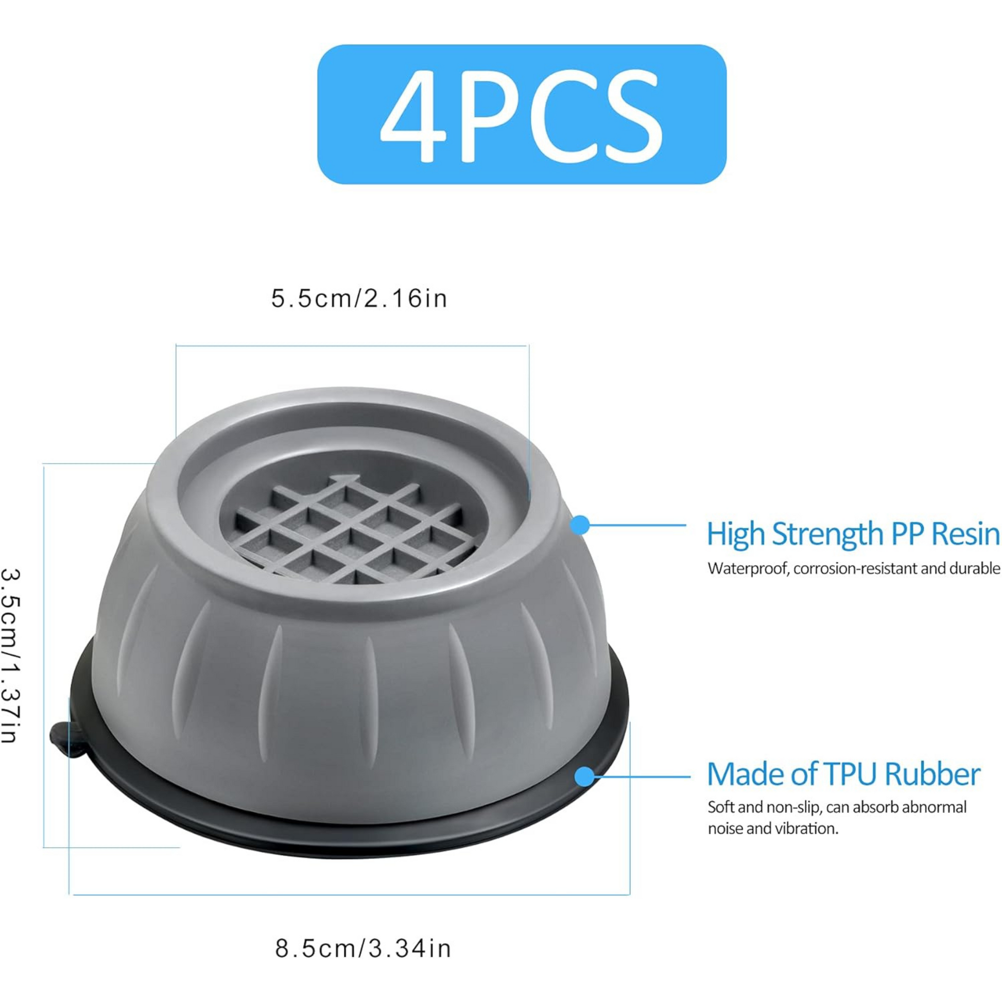 مجموعة من 4 أقدام عالمية مضادة للاهتزاز ، باللون الرمادي، للغسالة والمجفف، مضادة للانزلاق والاهتزاز