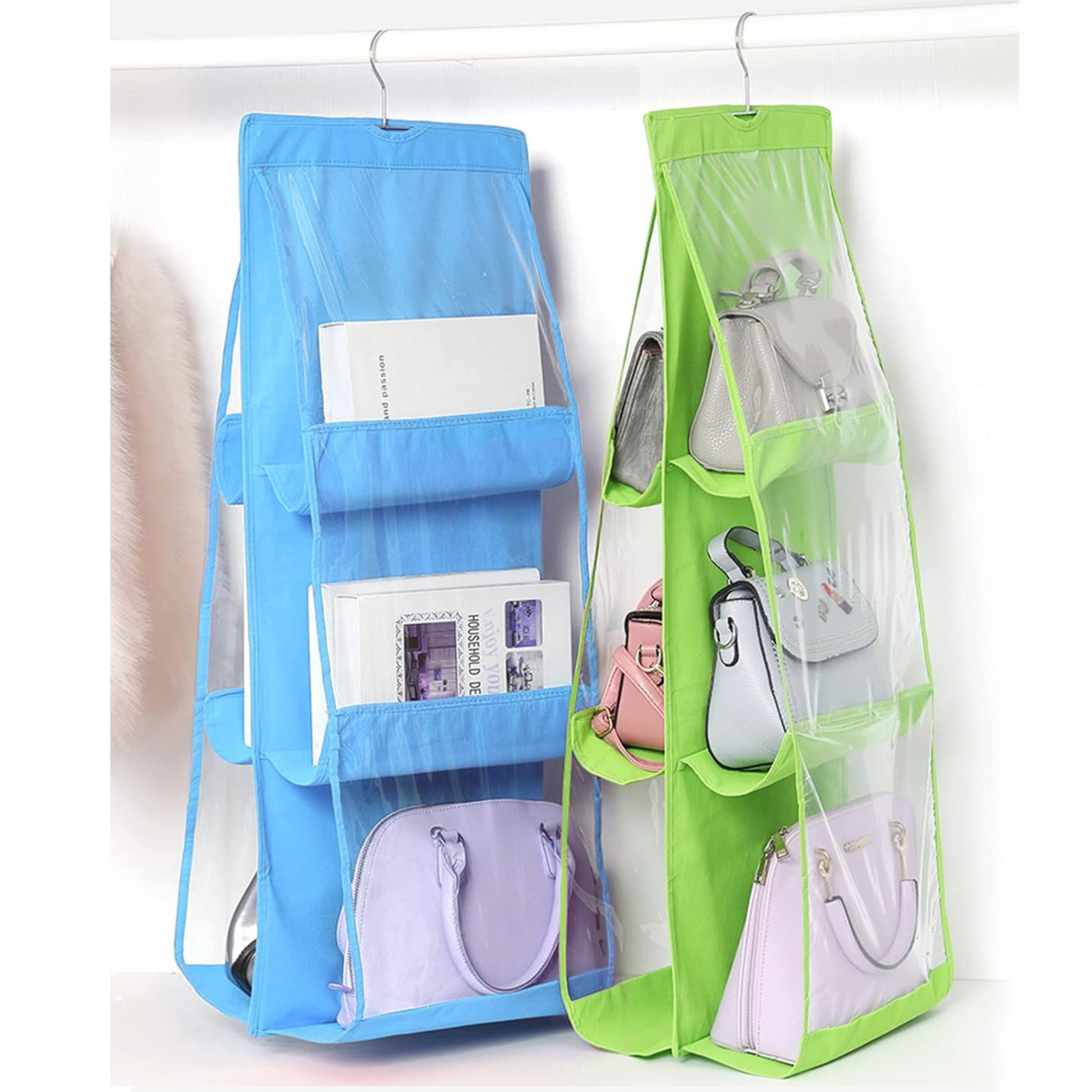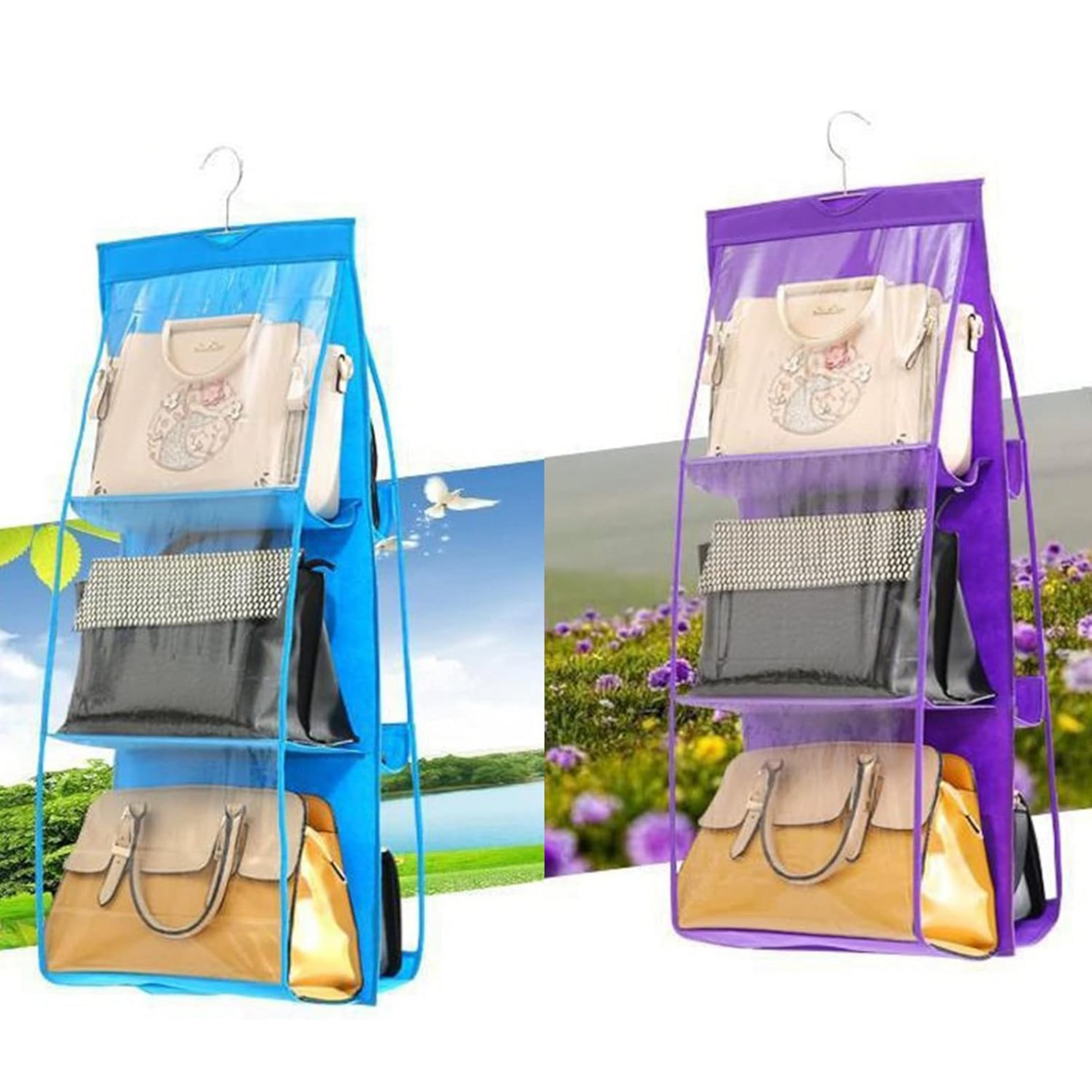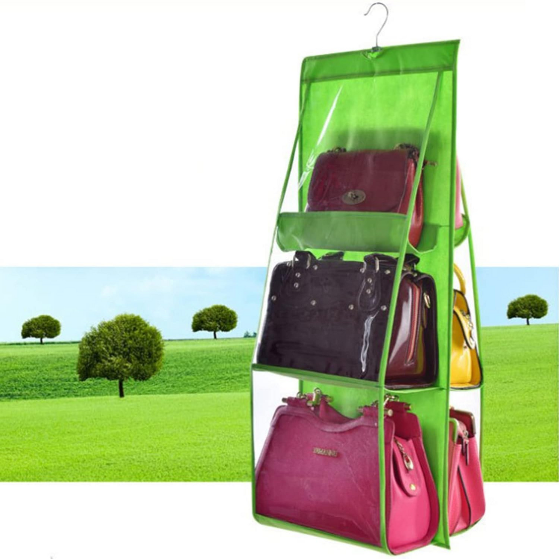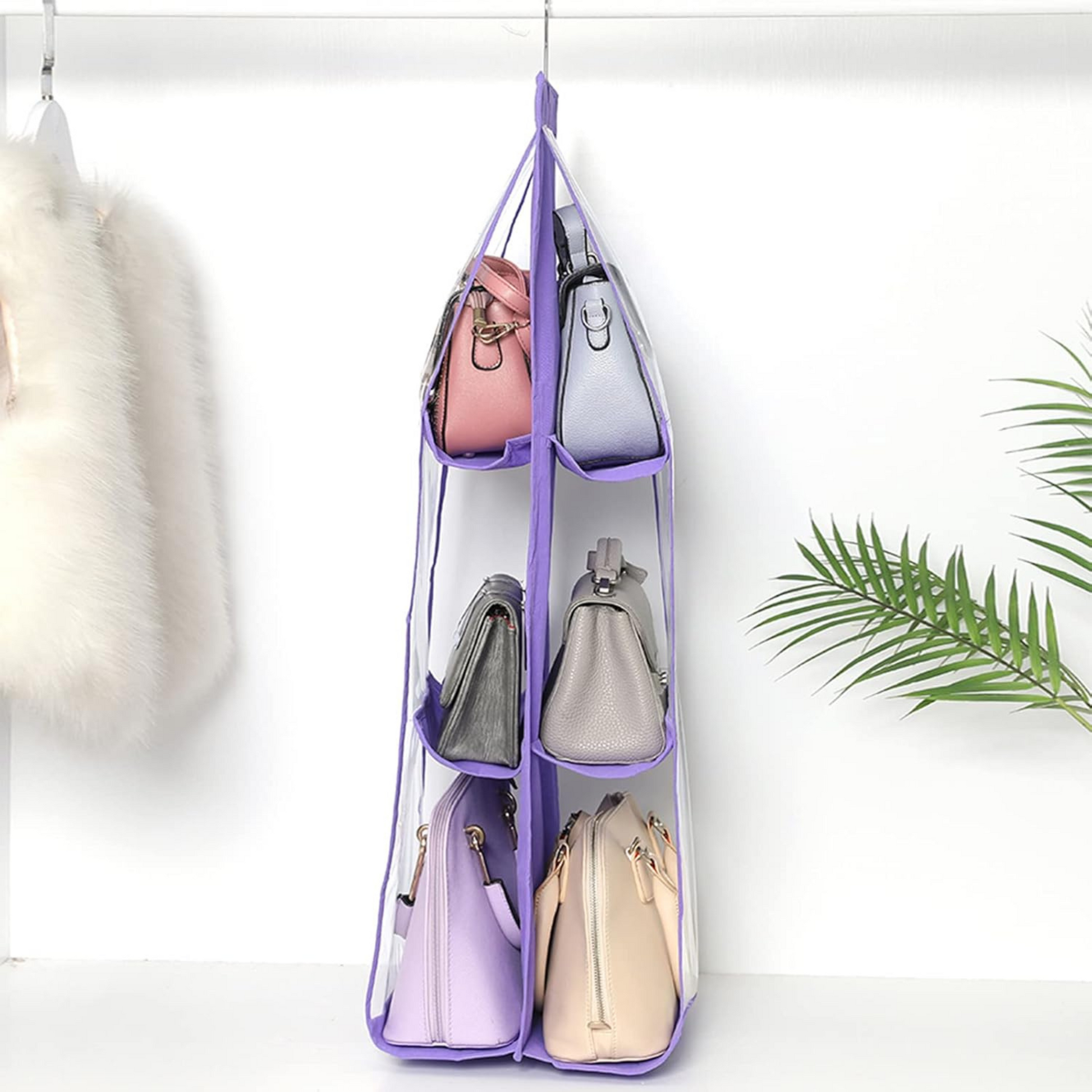 منظم الحقائب حمل 6 حقائب، يوفر المساحة، ويعطي للحقائب مظهر جديد، متعدد الألوان ، شفاف ومتين ،تصميم أنيق ، منظّم متعدد الاستخدامات للشنط والأغراض - خفيف وسهل الطي