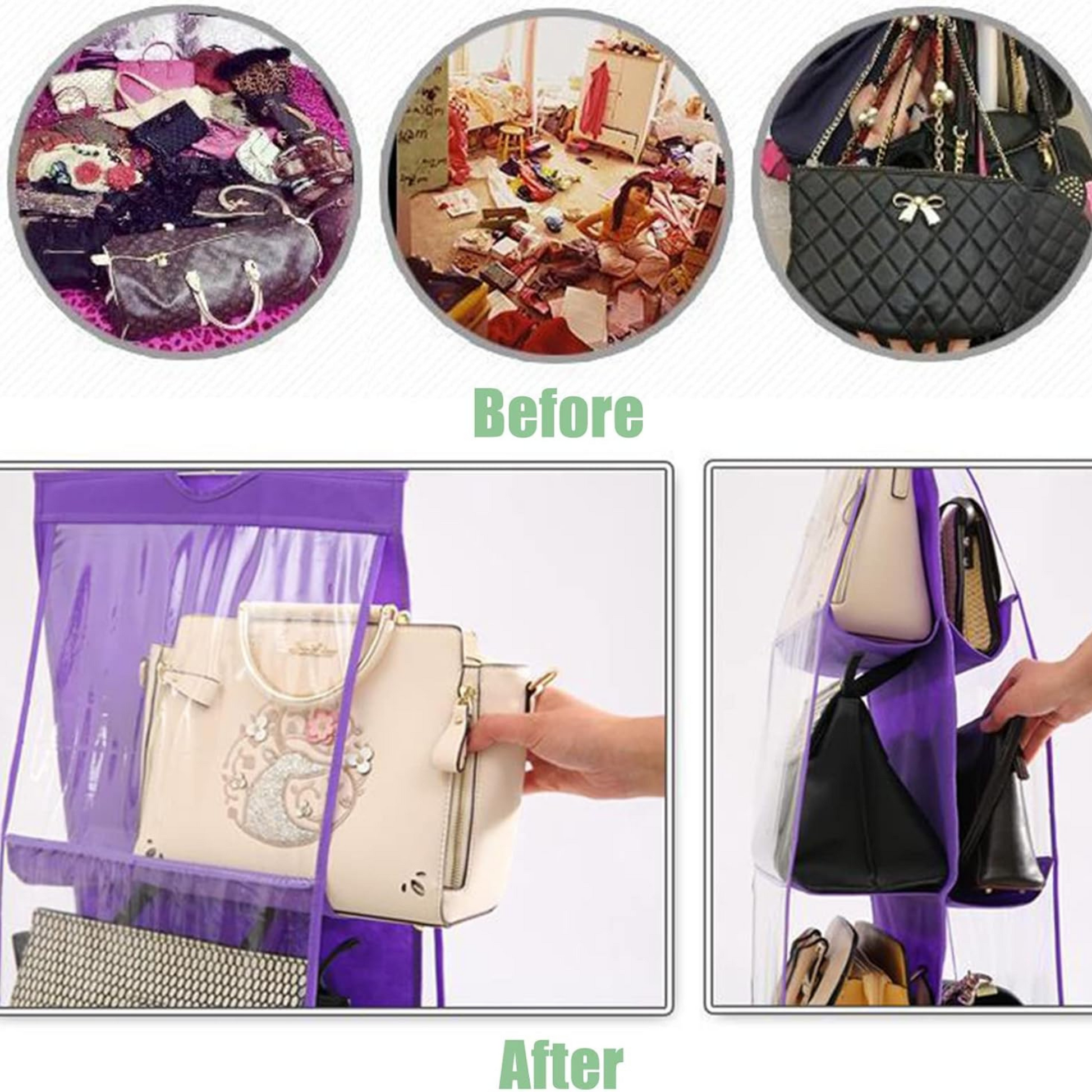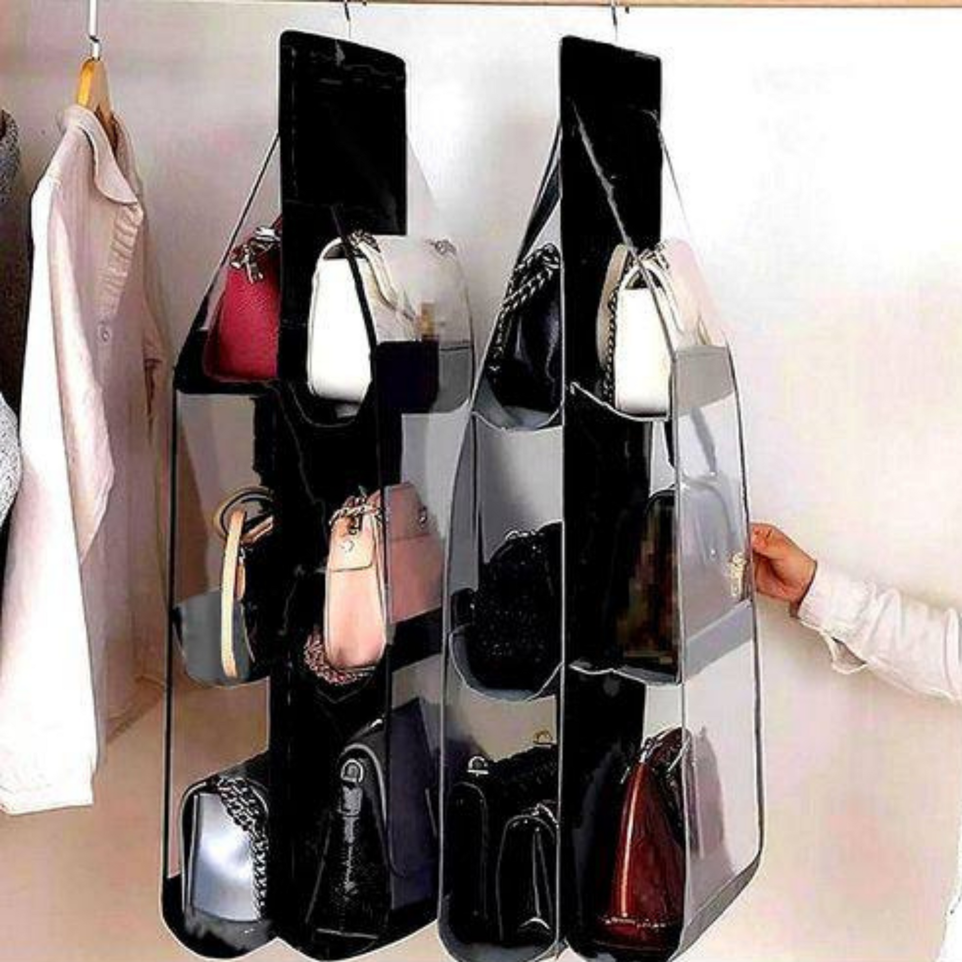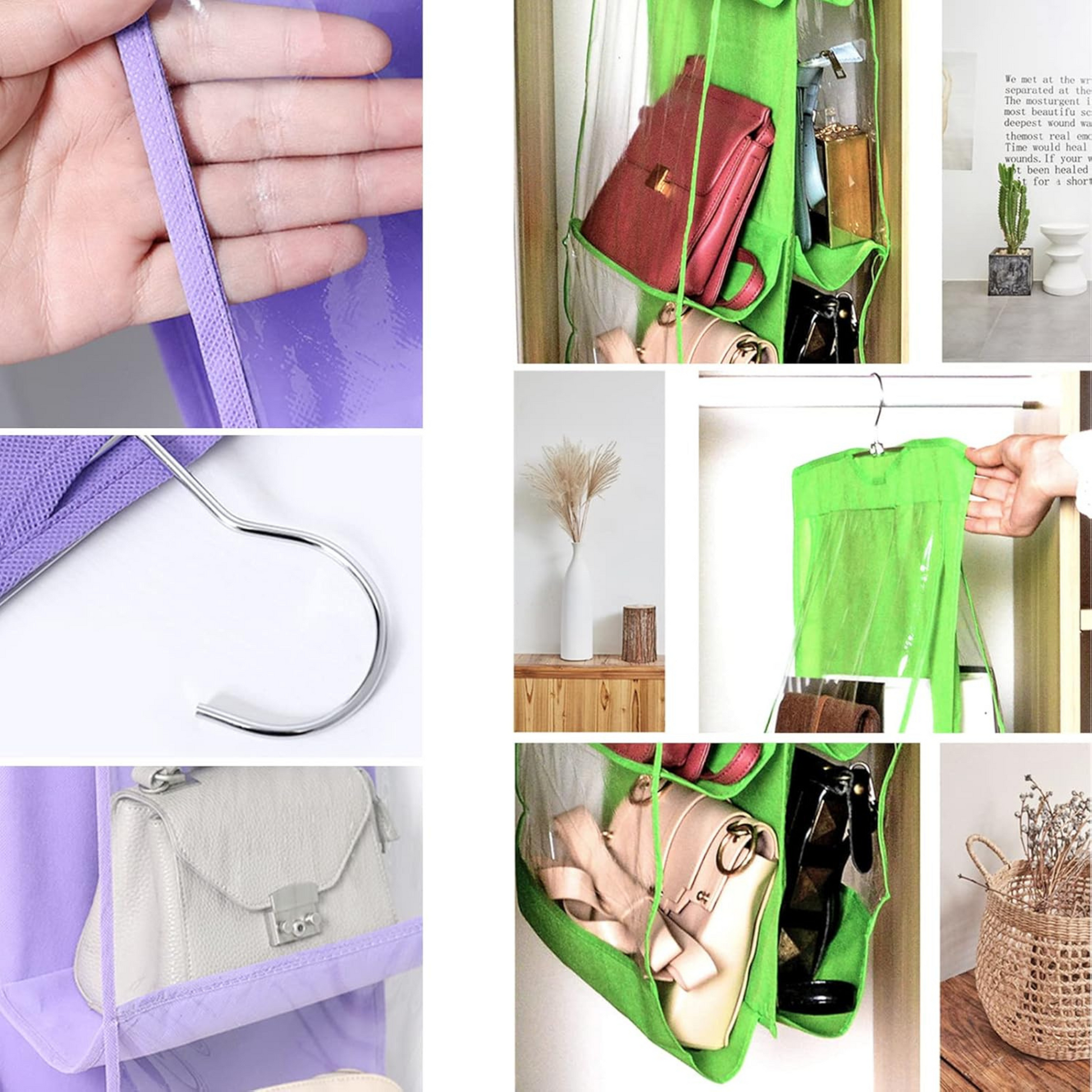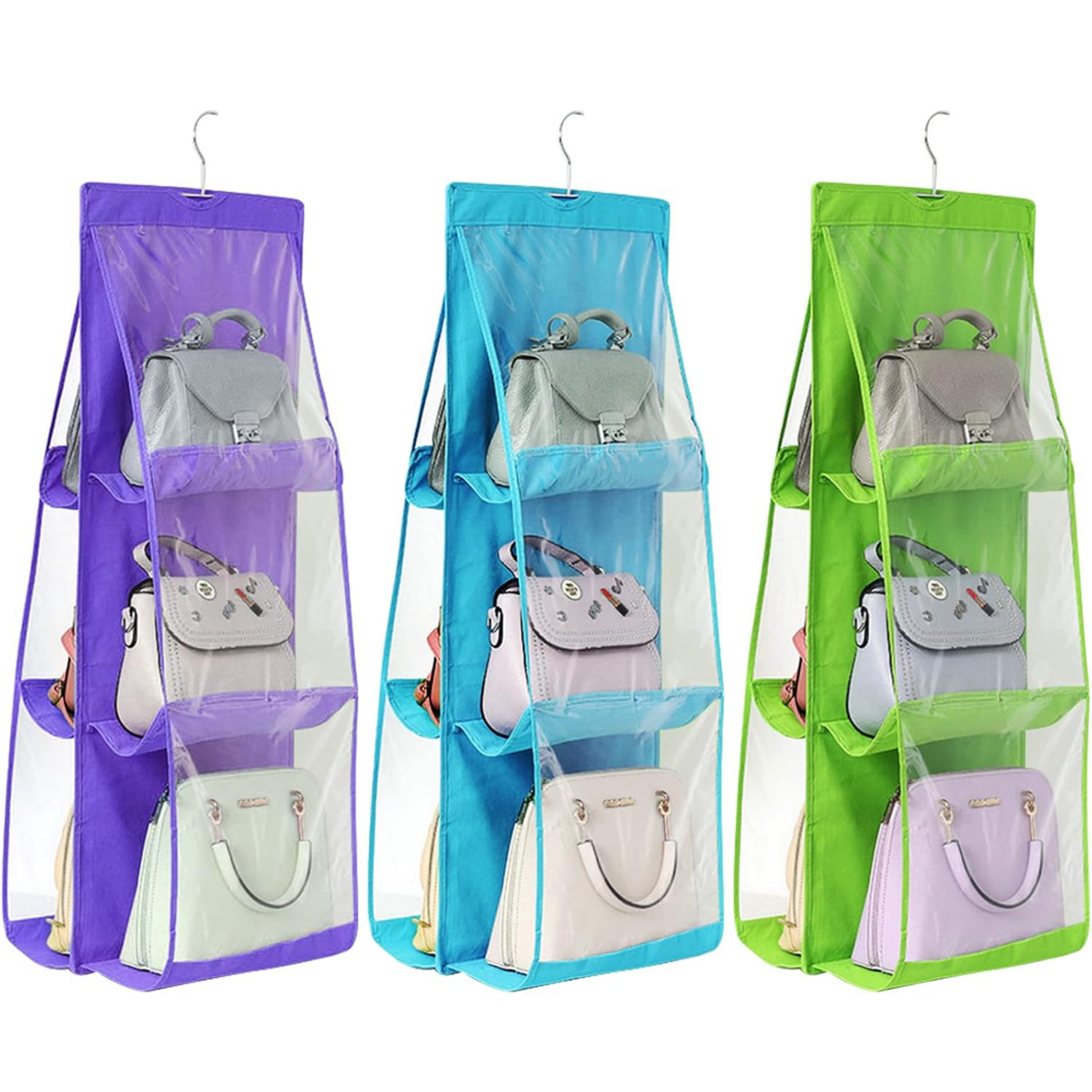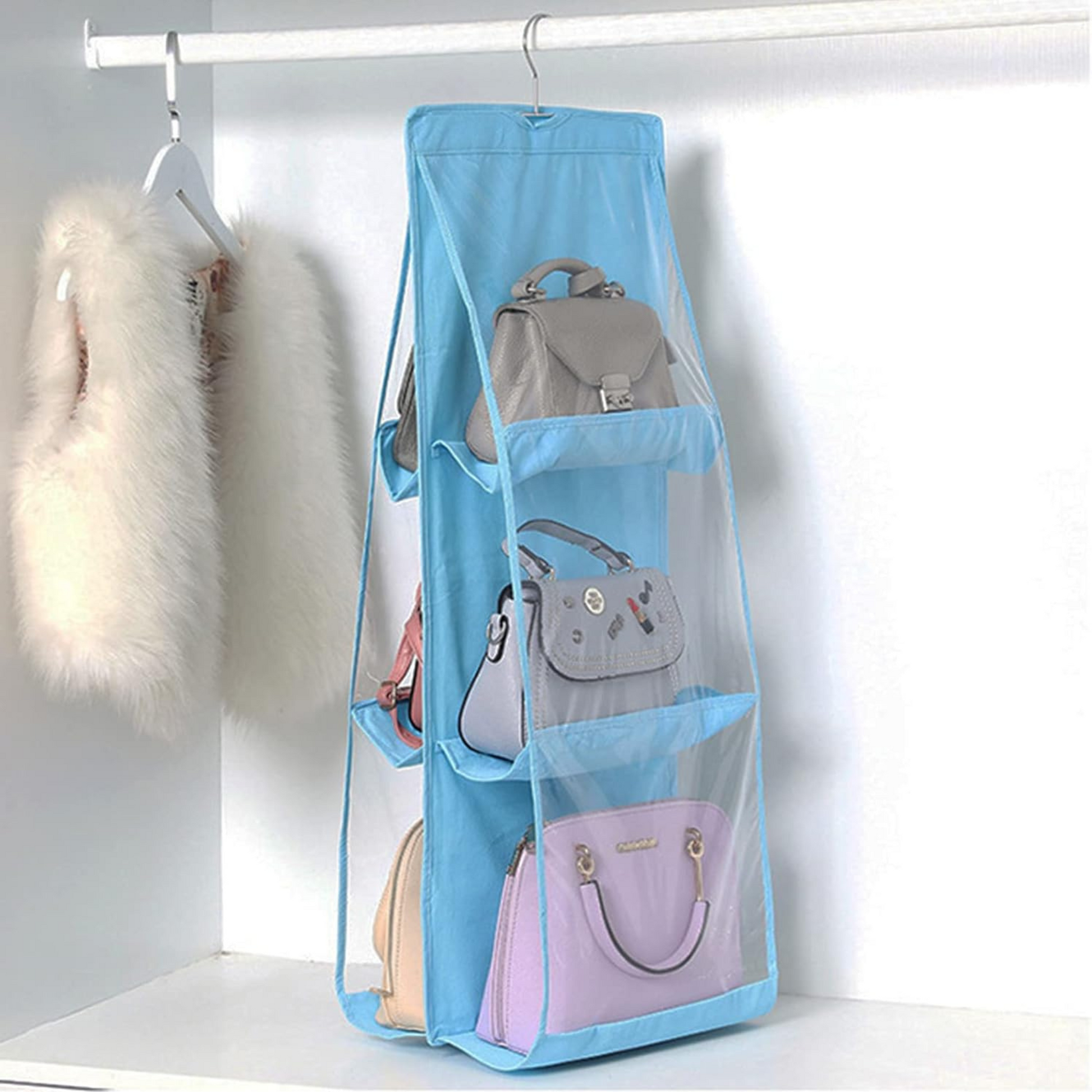 منظم الحقائب حمل 6 حقائب، يوفر المساحة، ويعطي للحقائب مظهر جديد، متعدد الألوان ، شفاف ومتين ،تصميم أنيق ، منظّم متعدد الاستخدامات للشنط والأغراض - خفيف وسهل الطي